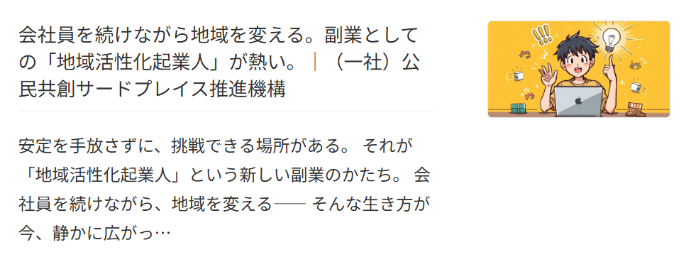 今回の記事では、「会社員を続けながら地域を変える。副業としての“地域活性化起業人”が熱い。」をテーマに、